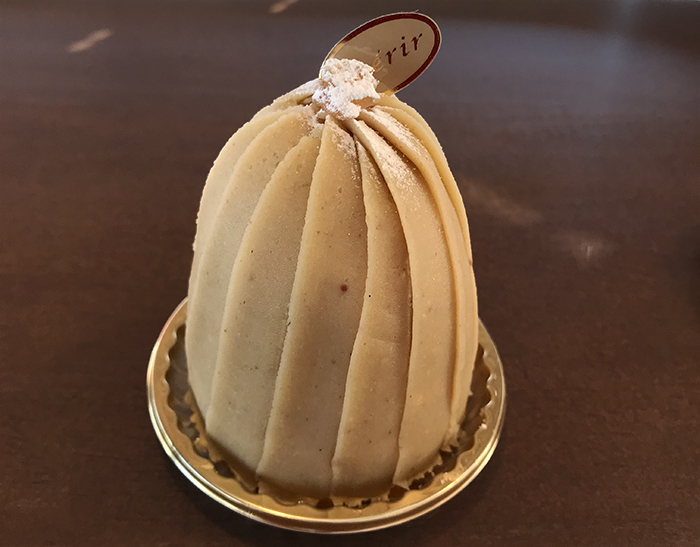香り高い四万十栗を使用したモンブラン。シェリールでは秋~冬にかけての季節限定商品ですが、毎年これを求めて遠方からもご来店されるお客様がいるほど、人気商品です。ほっくりとした和栗ペーストに、やさしいミルク風味のピュアクリームと、黒糖入りのしっとりロールケーキ、底にはシナモンが香るサブレクッキーの組み合わせ。口に入れた瞬間、栗の香りがいっぱいに広がる幸せスイーツです。