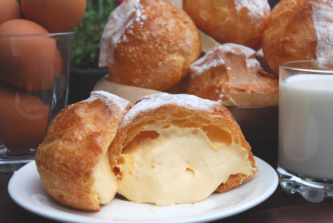 出来たてのシュークリームを提供したくて、フレッシュ感が良いピュアクリーム35を使用しています。当店のカスタードクリームとの相性が最高であること。軽さ、風味とも絶対の自信をもって提供しています。